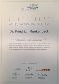 Unser Team besitzt und handelt nach der Zertifizierung durch die Deutsche Gesellschaft für Alterszahnmedizin (DGAZ)